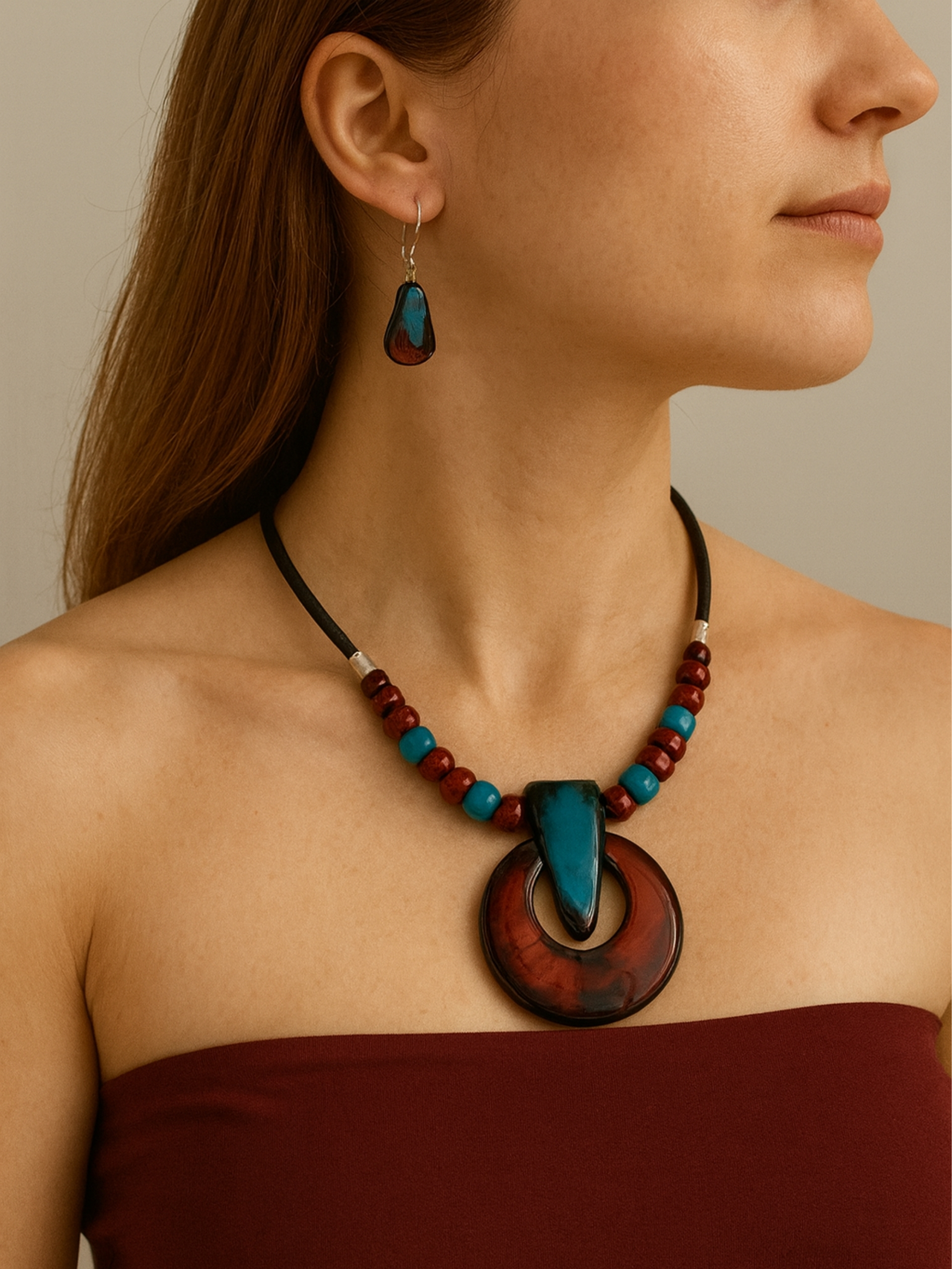 Handmade with tagua and natural seeds, each necklace captures the spirit of Ecuador — unique, vibrant, and full of life.