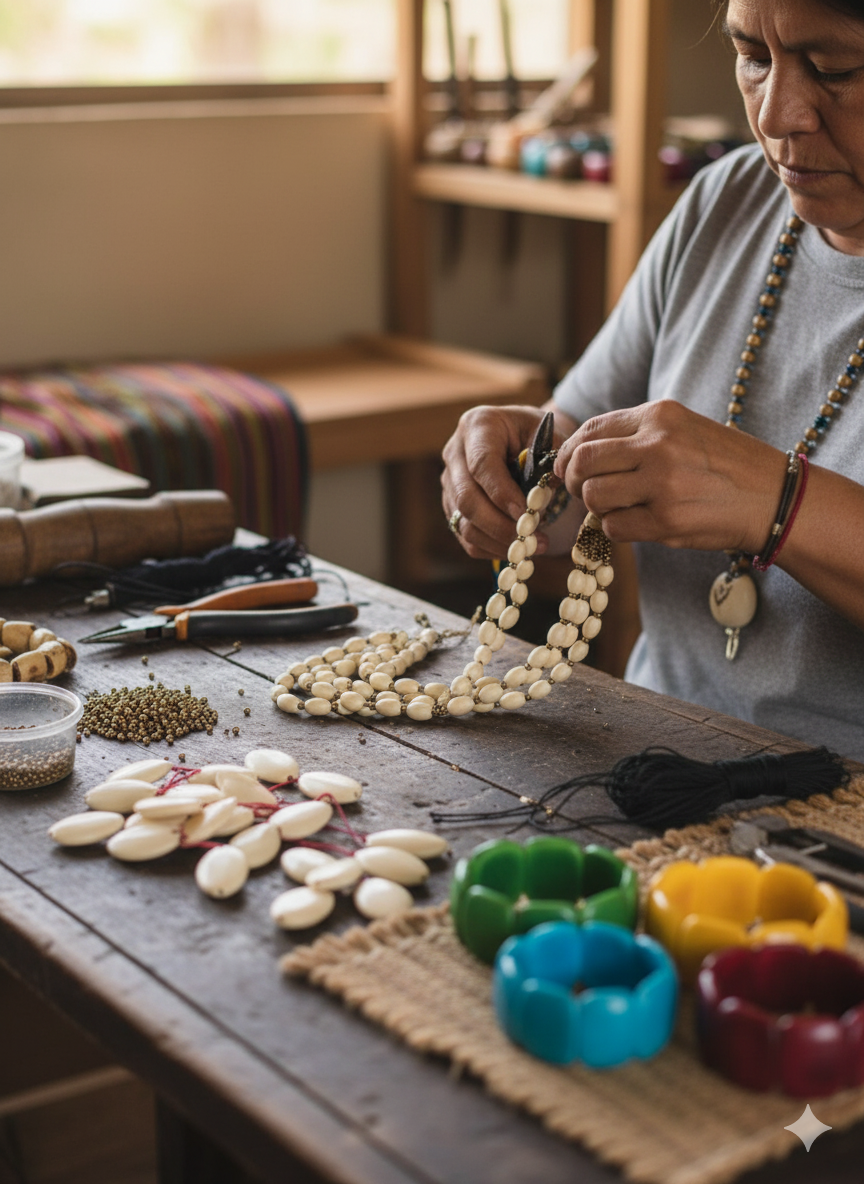 We work with indigenous materials such as tagua, transforming them into unique pieces that combine tradition and contemporary design. Each product is not just an object, but a bridge between nature, culture, and those who receive them. 🌿